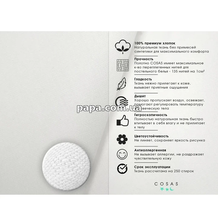 Набор пеленок Cosas идеально подходят для использования в дороге или на визитах к врачу. Легкая и компактная, она не занимает много места в сумке и всегда готова к использованию. Также пеленку удобно использовать как влагопоглощающее полотенце после ванны, обеспечивая ребенку сухость и комфорт, где бы вы ни находились.