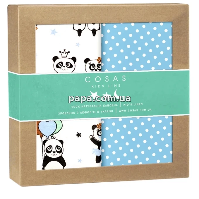 Набор пеленок Cosas Бязь Панды Звезды Горох Голубой, 80х100, 2 шт, 4822052036501