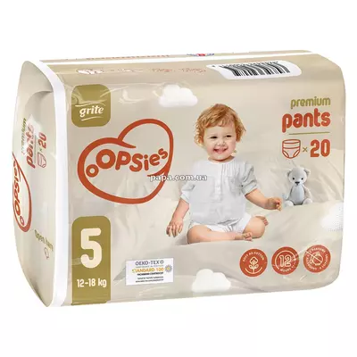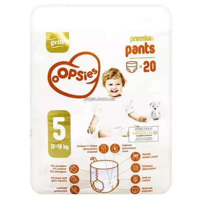 Подгузники-трусики Grite Oopsies размер 5, 12–18 кг, 20 шт., 4770023346909