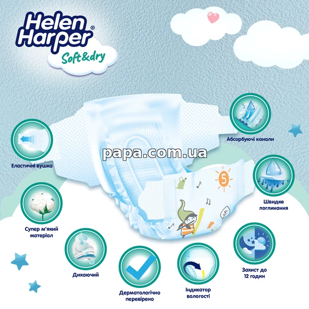 Основные характеристики подгузников Helen Harper Soft&Dry New Junior 5: