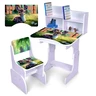 Детская парта N 2071-3-6 продумана до мелочей: для тетрадок и книг предусмотрены удобные полочки, а под столешницей расположен вместительный ящик для хранения канцелярии и мелочей. Столик дополнен подставкой для ног, а стульчик оснащен спинкой, что делает посадку более удобной и снижает нагрузку во время занятий. Все элементы выполнены из качественного ДСП, что обеспечивает надежность и аккуратный внешний вид.