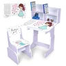 Детская парта N 2071-8-6 продумана до мелочей, чтобы ребенку было комфортно заниматься каждый день. На столешнице размещена таблица умножения и аккуратный рисунок с девочкой, который делает рабочее место более живым и интересным. Для тетрадей и книг предусмотрены удобные полочки, а под столешницей находится вместительный ящик, где легко хранить канцелярию и мелочи, не загромождая поверхность.