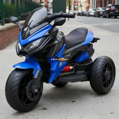 Детский мотоцикл M 4274EL-4 оснащен тремя колесами, что делает его еще более устойчивым и позволяет малышу уверенно держать равновесие даже во время первых попыток вождения, а два двигателя обеспечивают хорошую тягу и плавный разгон без рывков.