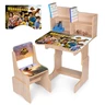 Деревянная детская парта N 2071-14-3 продумана до мелочей и растет вместе с ребенком благодаря регулировке высоты столика и стульчика, что позволяет сохранить правильную посадку и комфорт на протяжении нескольких лет. Удобная подставка для ног и стульчик со спинкой поддерживают спину, снижая нагрузку, а гладкая моющаяся столешница делает уход простым и быстрым даже при активном использовании.
