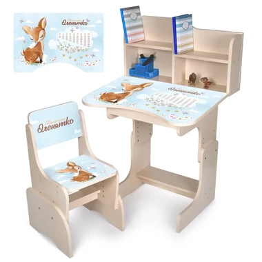 Деревянная детская парта N 2071-16-2 имеет продуманную конструкцию, высота столика и стульчика регулируется и подстраивается под рост ребенка. Стульчик оснащен спинкой, а столик имеет подставку для ног, что помогает сохранить правильную посадку во время занятий. Для тетрадей и книг предусмотрены полочки, а под столешницей расположен вместительный ящик, куда удобно складывать все необходимые мелочи.