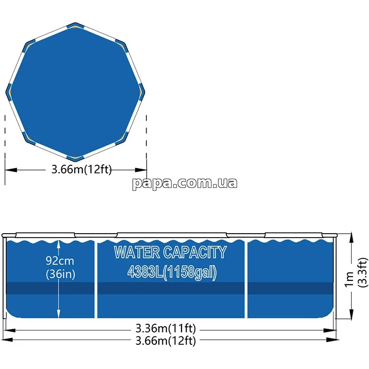 Каркасный бассейн Avenli 12336V64 оснащен надежной основой из оцинкованных стальных труб с порошковым напылением, которые защищены от коррозии и обеспечивают устойчивость всей конструкции, а оптимальные размеры с диаметром 366 см и высотой 100 см позволяют комфортно разместиться сразу нескольким людям, создавая идеальные условия как для отдыха, так и для активного времяпрепровождения.