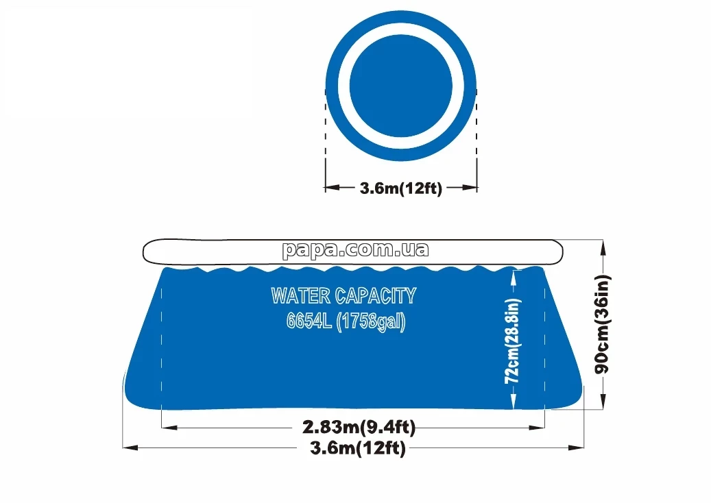 | Объем бассейна | заполнен на 90% | 6654 л |