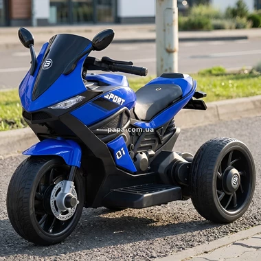 Детский мотоцикл M 4454ELR-4 синий - выполнен в стиле настоящего спортивного байка, благодаря чему сразу привлекает внимание ребенка и дарит ощущение настоящей поездки, при этом продуманная конструкция с тремя колесами обеспечивает отличную устойчивость и помогает малышу чувствовать себя уверенно даже во время первых попыток управления, что особенно важно для комфортного и безопасного катания.