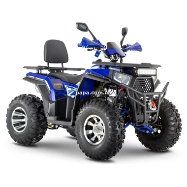 Квадроцикл AFB200-4 синий имеет сиденье со спинкой, что обеспечивает максимально комфортную езду, на руле у него есть зеркала, у данной модели светятся фары, что позволяет кататься на квадроцикле даже ночью.