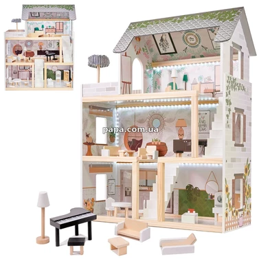 Деревянная игрушка MD 1426 имеет три этажа и балкон, которые делают конструкцию еще более интересной и приближенной к настоящему дому, который хочется рассматривать и обустраивать снова и снова.