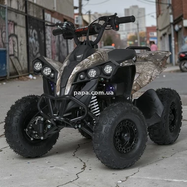 Детский квадроцикл E-XBW-1200S-13(MP3) бежевый камуфляж - это стильная и мощная модель, которая станет отличным приобретением для ребенка или подростка Квадроцикл имеет большие надувные резиновые колеса, которые сглаживают неровности дороги и добавляют комфорта во время езды, позволяя кататься не только по ровным покрытиям, но и по грунтовой дороге.