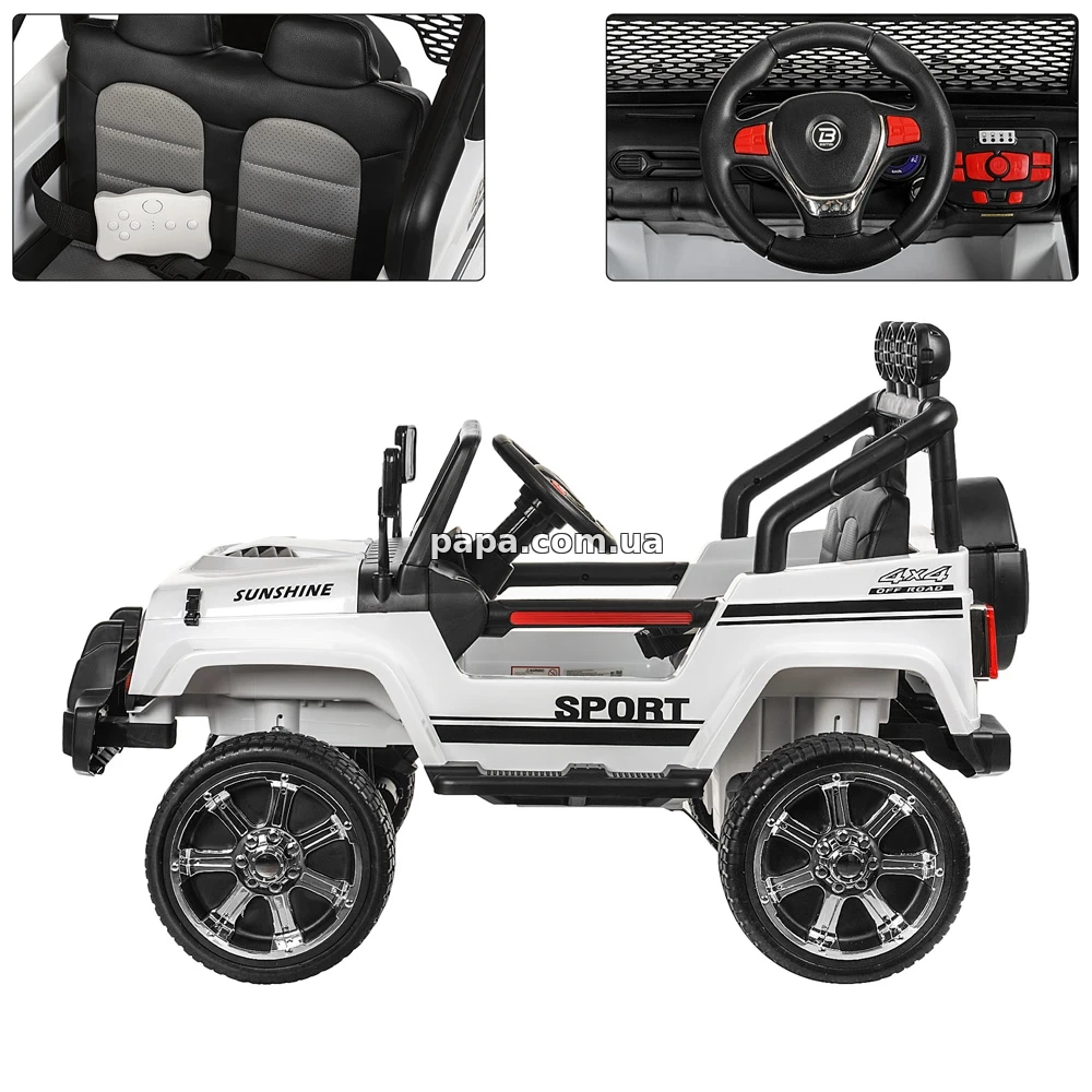 Детский электромобиль M 3237EBLR-1 радует не только внешним видом, но и продуманной функциональностью, позволяя ребенку самостоятельно управлять джипом с помощью руля и педали газа, что делает каждую поездку интересной и развивающей, а для самых маленьких предусмотрен удобный пульт управления, с помощью которого родители могут полностью контролировать движение и катать малыша без лишних переживаний.