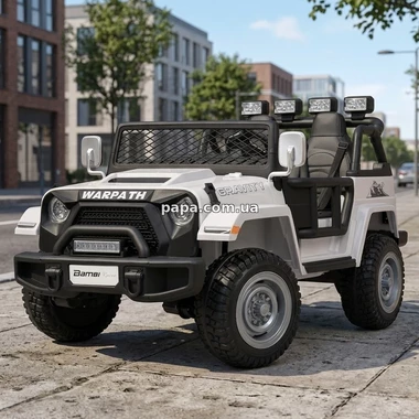 Двухместный детский электромобиль M 6108EBLR-1(24V) белый - создан в виде мощного джипа, который сразу привлекает внимание своим внушительным внешним видом и продуманной конструкцией, он оснащен четырьмя моторами по 30W, благодаря чему уверенно справляется с разными покрытиями и дарит ребенку ощущение настоящей поездки, а качественный аккумулятор 12V9AH обеспечивает долгое время катания без частых подзарядок.