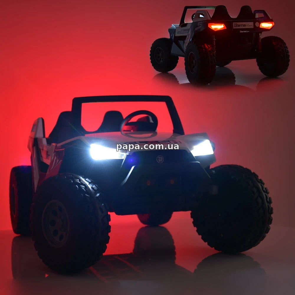 Детский багги M 4170EBLR-8(24V) оснащен четырьмя моторами по 76Вт, благодаря чему он демонстрирует хорошую тягу и уверенно разгоняется даже при полной загрузке, работает от двух аккумуляторов, что положительно влияет на длительность катания, а большие EVA колеса легко справляются как с ровным асфальтом, так и с грунтовой дорогой.