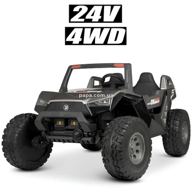 Детский багги M 4170EBLRS-11(24V) оснащен четырьмя моторами по 76Вт, благодаря чему он демонстрирует хорошую тягу и уверенно разгоняется даже при полной загрузке, работает от двух аккумуляторов, что положительно влияет на длительность катания, а большие EVA колеса легко справляются как с ровным асфальтом, так и с грунтовой дорогой.