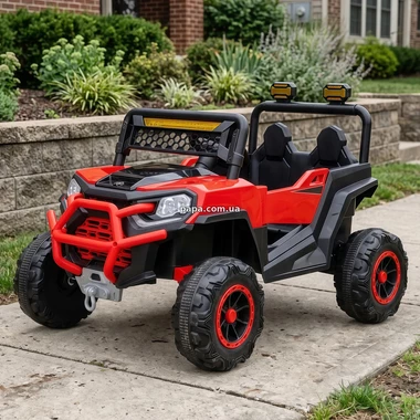 Детский электромобиль M 6324EBLR-3 красный - это крутой и современный джип, выполненный в стиле настоящего багги, который сразу привлекает внимание своим эффектным дизайном и продуманными деталями, создавая у ребенка ощущение, будто он управляет настоящим внедорожником, готовым к любым приключениям во дворе или на прогулке.