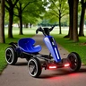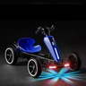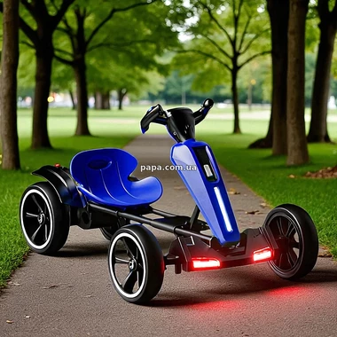 Детский электрокарт M 6277EBR-4 синий имеет комфортное регулируемое сиденье, которое легко подстраивается под рост ребенка, обеспечивая удобную посадку даже при длительном катании, а светящиеся фары и эффектная подсветка корпуса и днища создают особую атмосферу, особенно в вечернее время.