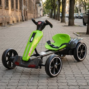 Детский электрокарт M 6277EBR-5 зеленый имеет комфортное регулируемое сиденье, которое легко подстраивается под рост ребенка, обеспечивая удобную посадку даже при длительном катании, а светящиеся фары и эффектная подсветка корпуса и днища создают особую атмосферу, особенно в вечернее время.