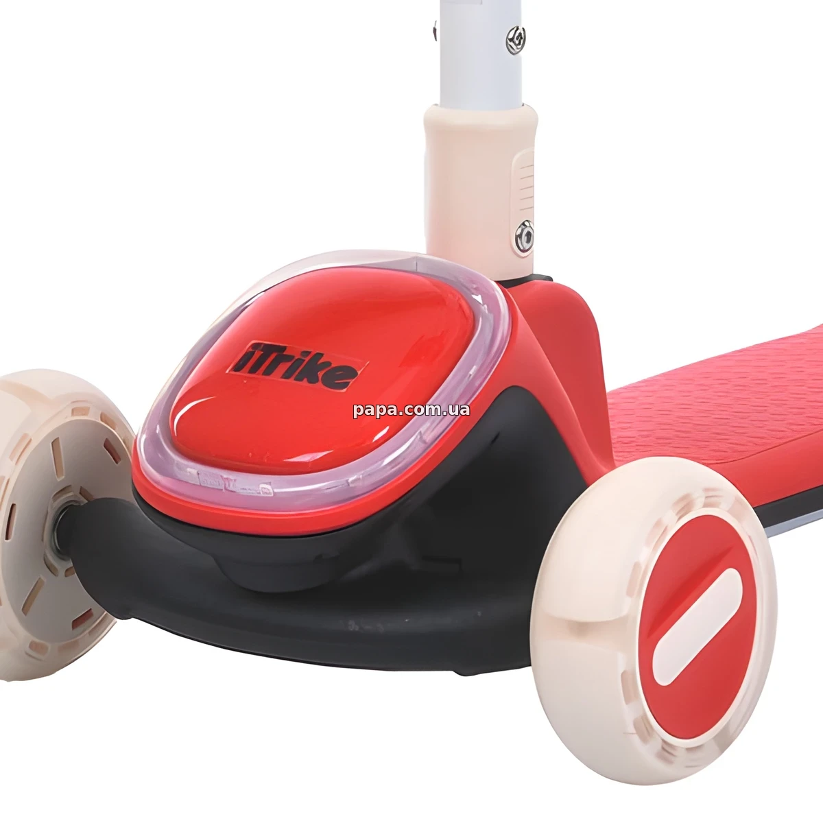 Детский самокат JR3-164-W белый оснащен колесами с подсветкой, которые делают катание более ярким и увлекательным, особенно в вечернее время, также данная модель имеет музыку и световые эффекты, что превращает обычную прогулку в настоящее развлечение и точно понравится ребенку.
