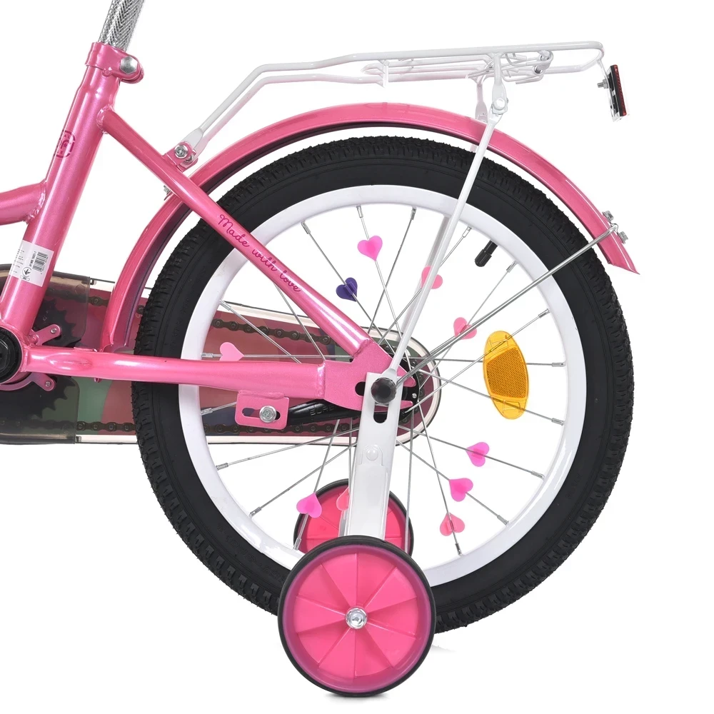 Велосипед детский MB 16052-1 продуман до мелочей для удобства ребенка, регулируемое по высоте сиденье и руль позволяют легко подстроить велосипед под рост пользователя, эргономичное сиденье обеспечивает комфорт даже при длительных прогулках, а боковые страховочные колесики помогают удерживать равновесие и быстрее освоить навыки езды.