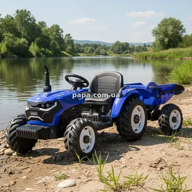 Детский электромобиль трактор M 6260 EBLR-4 (24V) оснащен двумя мощными моторами и аккумулятором, благодаря чему уверенно едет по разным покрытиям и справляется с небольшими неровностями, большие EVA колеса обеспечивают плавный ход, а прицеп в комплекте расширяет возможности для игр, позволяя перевозить игрушки и придумывать собственные сценарии катания.