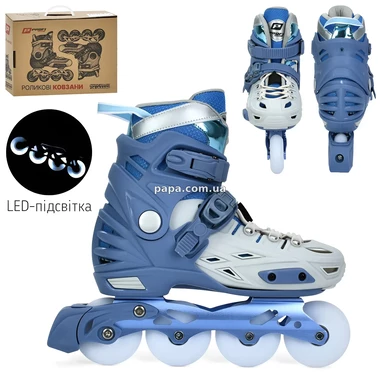Детские ролики станут надежным спутником в активном досуге ребенка и подарят массу положительных эмоций. Их легко подстроить под ногу, удобно надевать и снимать, а яркая подсветка колес добавляет радости каждому катанию. Купить детские ролики A 4155-L-BL - значит сделать ребенку отличный подарок.
