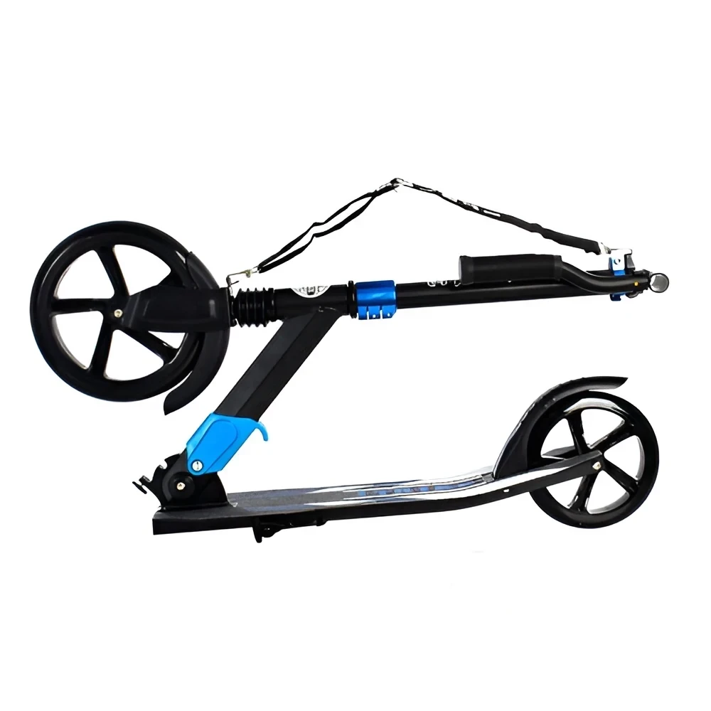 Самокат SR 2-079-B - подойдет тем, кто ищет удобный и надежный транспорт для ежедневных поездок, он легко складывается и не занимает много места, а благодаря алюминиевой раме получается достаточно легким, чтобы без усилий переносить его в руках или возить в багажнике, при этом конструкция ощущается прочной и надежной, так что пользоваться им комфортно и взрослому, и подростку.