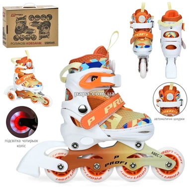 Детские ролики A 4156-XS-OR отличаются удобной и надежной застежкой, сочетая шнуровку и баклю, что делает их максимально простыми в использовании и безопасными для ребенка. Колесики расположены в один ряд, изготовлены из прочного полиуретана и обеспечивают плавное скольжение, что особенно важно для новичков. Подсветка колес добавляет азарт и радость во время катания в вечернее время.