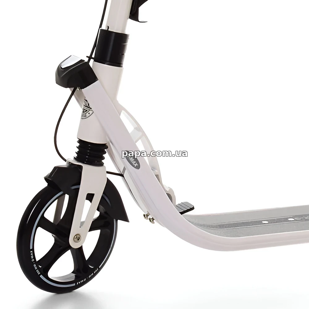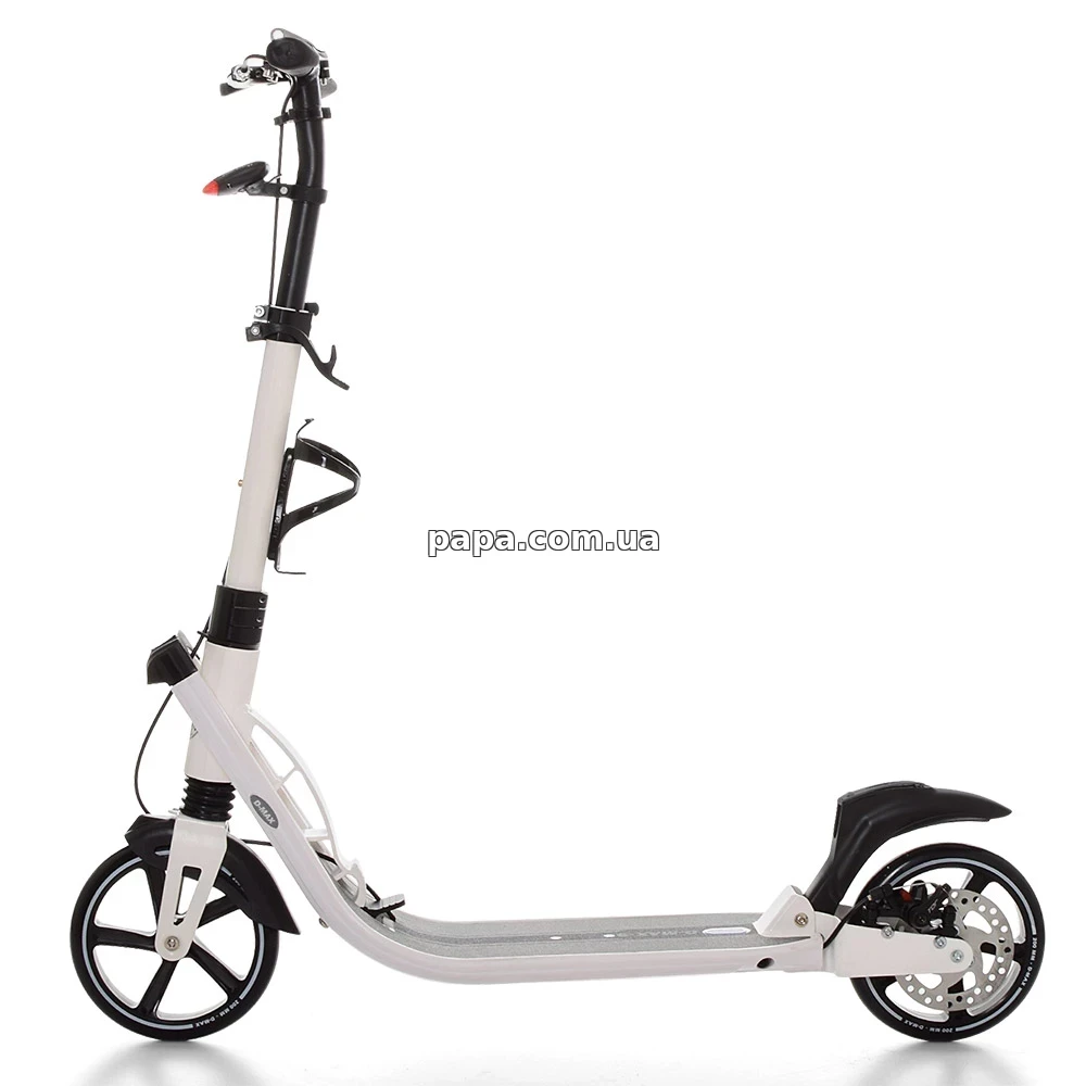 Самокат для взрослых SR 2-015-3-W оснащен полиуретановыми колесами, которые делают движение плавным и мягким даже по неровной поверхности, а крыло над задним колесом защищает от брызг. На руле расположен удобный подстаканник, в котором можно фиксировать бутылочку с водой, а спереди есть фара для комфортного передвижения в темное время суток.