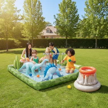 Надувной игровой центр Intex 56132 комплектуется забавными надувными фигурками динозавров и яркими шариками, которые добавляют игре динамики и разнообразия. Эти элементы не просто украшают конструкцию, но и помогают ребенку развивать воображение, придумывать сюжеты и активно двигаться. Мягкие надувные детали приятны на ощупь, поэтому дети могут свободно взаимодействовать с ними без риска травмироваться.