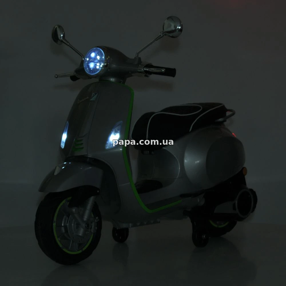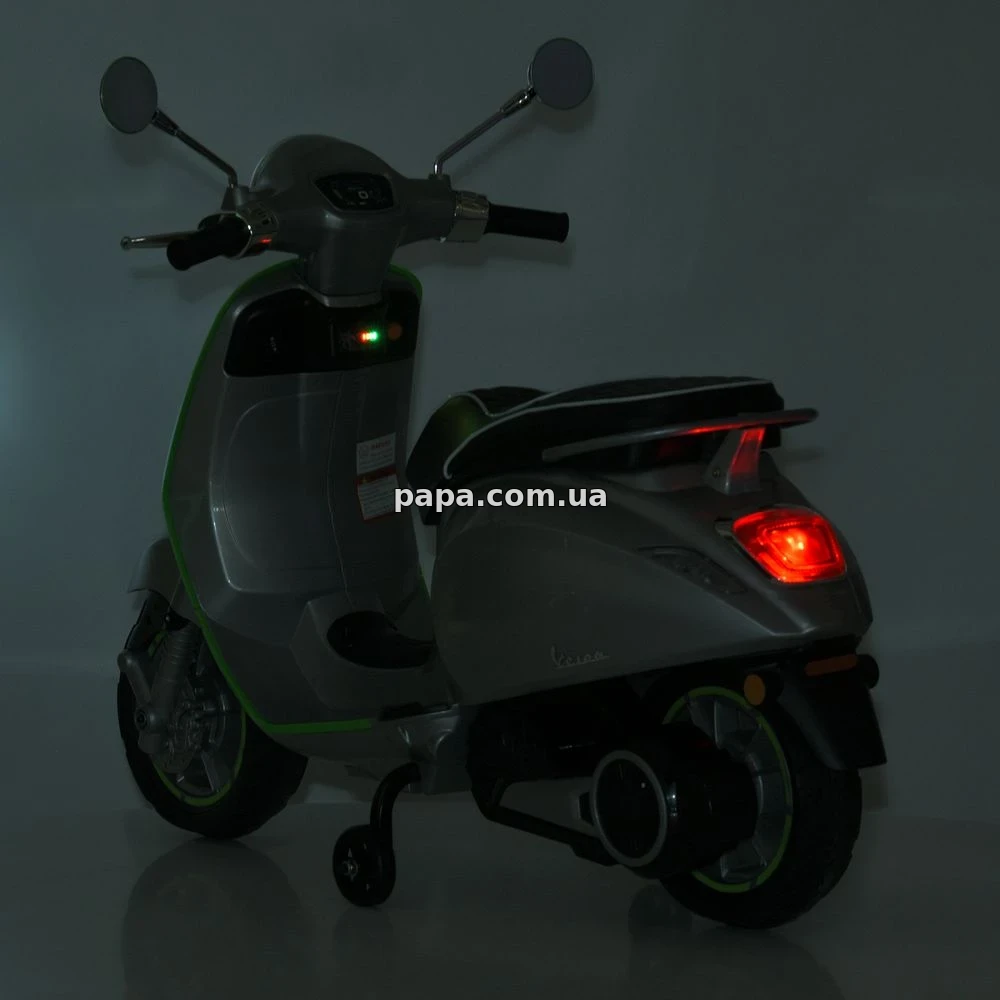 Детский мотоцикл M 6288 EL-11-5 - выглядит очень реалистично и с первого взгляда напоминает настоящий скутер Vespa, благодаря плавным линиям корпуса, продуманным деталям и стильному дизайну. Такая модель сразу привлекает внимание ребенка и вызывает искренний восторг, превращая обычную игрушку в полноценный транспорт для веселых прогулок во дворе или на площадке.