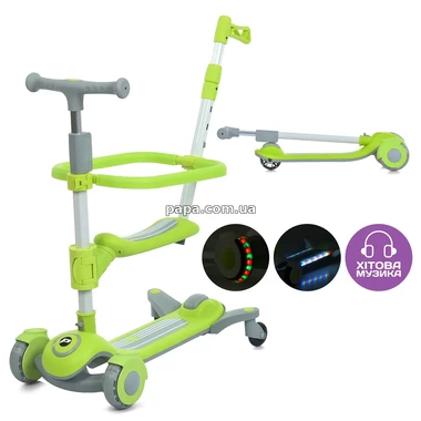 Детский самокат Prof1 Kids JR 3-127-GR радует не только практичностью, но и внешним видом, который сразу привлекает внимание. Колеса с подсветкой эффектно светятся во время движения, добавляя прогулкам ярких эмоций, а встроенные музыка и свет превращают обычное катание в настоящее развлечение. Складной руль упрощает хранение и транспортировку, а возможность регулировки высоты позволяет подстроить самокат под рост ребенка и использовать его дольше без необходимости замены.