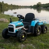 Детский трактор M 5733 EBLR-4 оснащен двумя моторами и работает от аккумулятора, фары светятся, а на передней панели установлена магнитола, что делает поездки еще более интересными и яркими, управлять трактором можно с помощью руля и педали газа, а для самых маленьких предусмотрен пульт, с помощью которого взрослые могут безопасно катать малыша.
