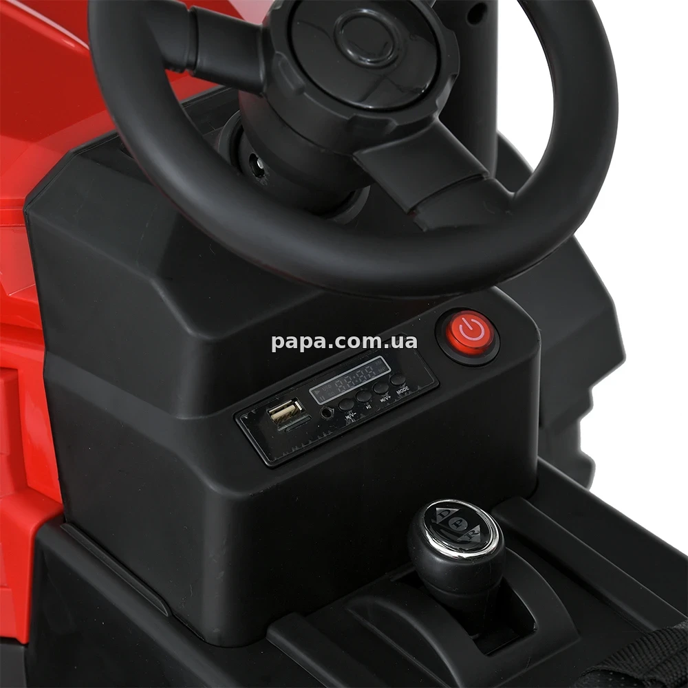 Детский трактор M 5852 EBLR-4 радует световыми и звуковыми эффектами, светящимися фарами, музыкой и реалистичным звуком при старте, создавая ощущение настоящей поездки, а магнитола с поддержкой MP3 и USB дает возможность включать любимые мелодии.