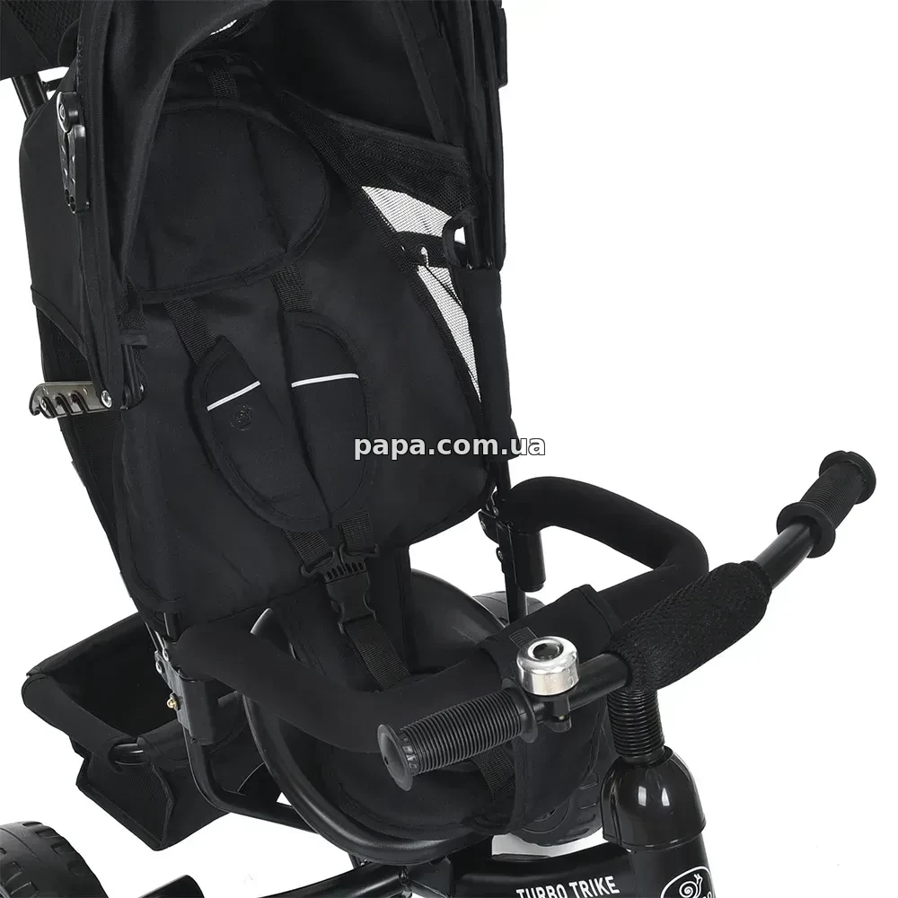 Трехколесный велосипед Turbo Trike MT 1005-3 оборудован большим капюшоном со смотровым окошком, который легко регулируется с помощью удобных фиксаторов, защищая ребенка от солнца и ветра. Удобное сиденье с мягкой накладкой и регулируемым расстоянием до руля обеспечивает правильную посадку и комфорт даже во время длительных прогулок. Страховочный раздвижной бампер с мягкой накладкой и ремень-защита от сползания гарантируют безопасность, а трехточечный ремень надежно фиксирует малыша.