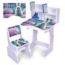 Детская парта N 2071-1-6 отлично подходит для учебы и творчества благодаря продуманной системе хранения. Для тетрадей и книг предусмотрены удобные полочки, а под столешницей расположен вместительный ящик, куда можно сложить канцелярские принадлежности и мелочи. Гладкая столешница с моющейся поверхностью легко очищается, что особенно удобно при активных занятиях и рисовании.