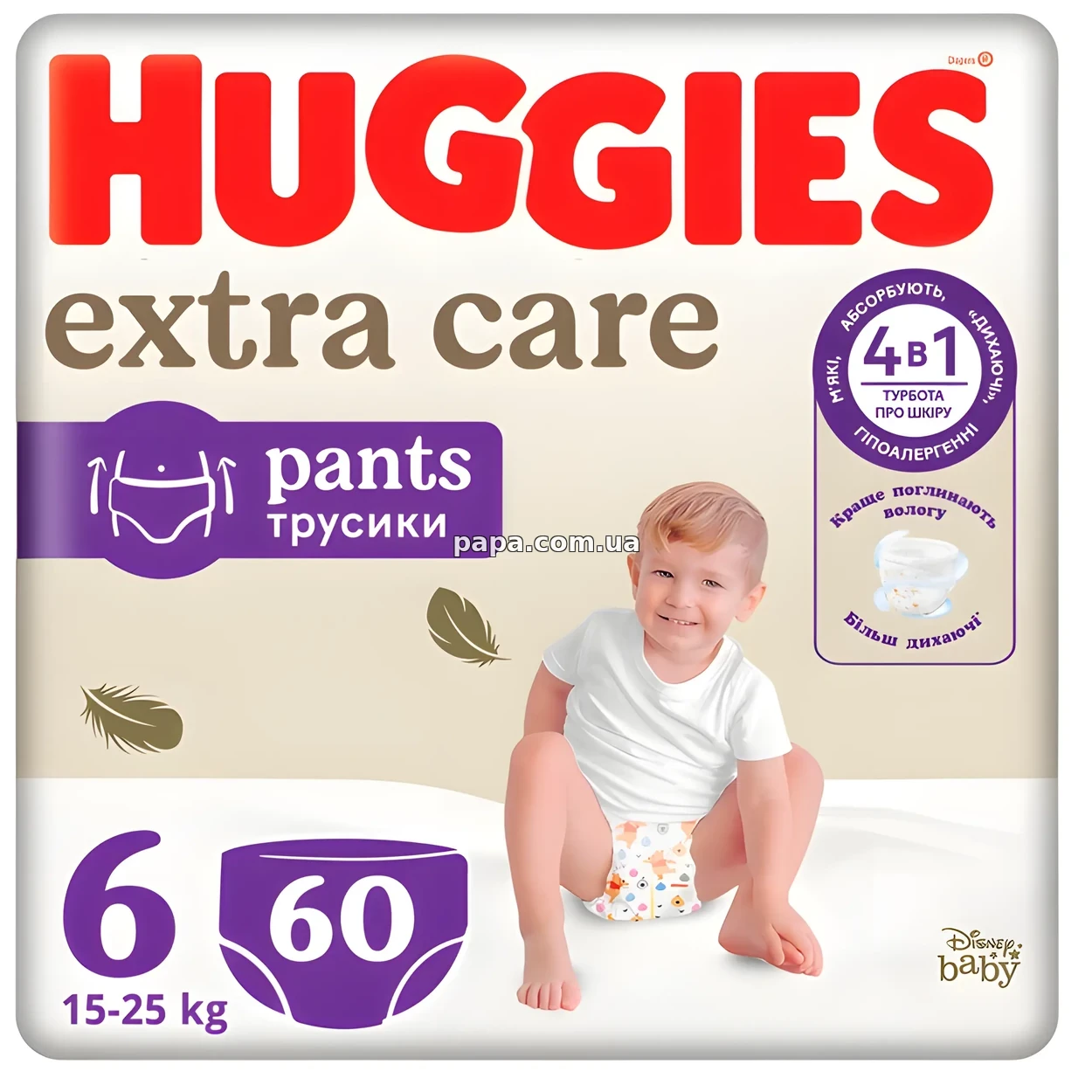 Трусики-подгузники Huggies Extra Care Pants Box 6, 15-25 кг, 60 шт., 5029053582429